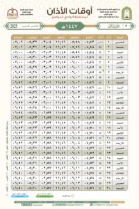 تقويم الآذان لشهر جمادى الأولى لعام 1447 لمحافظة وادي الدواسر