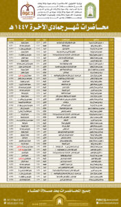 محاضرات شهر جمادى الآخرة لعام 1447 بمجوامع ومساجد محافظة وادي الدواسر